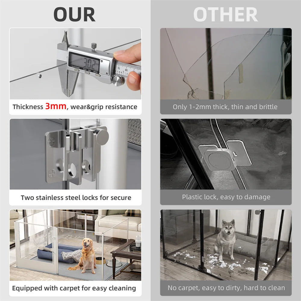 1Pc Large Acrylic Dog Playpen Cage Whelping Pen Box Indoor Enclosure Pet Clear Fence Puppy Playpen with Waterproof Fertility Pad