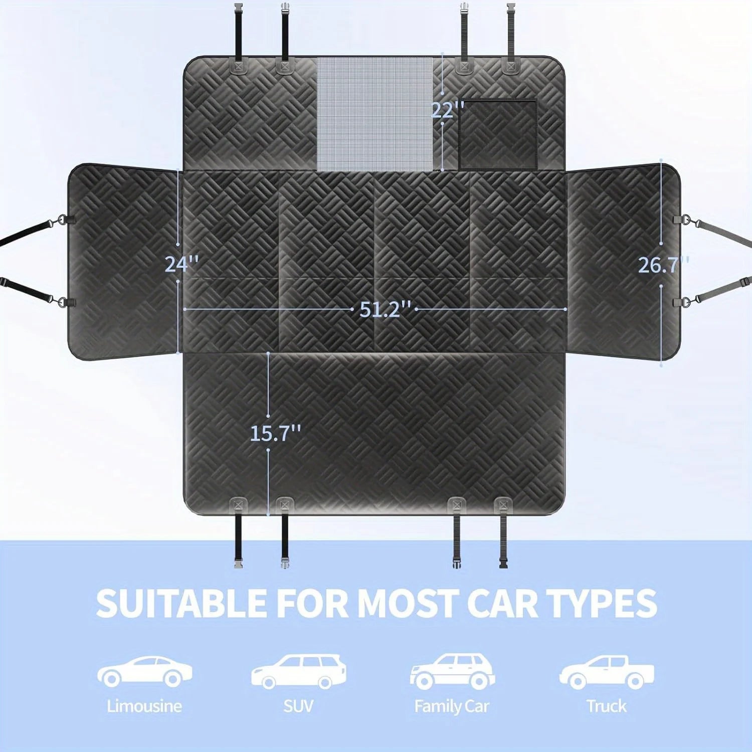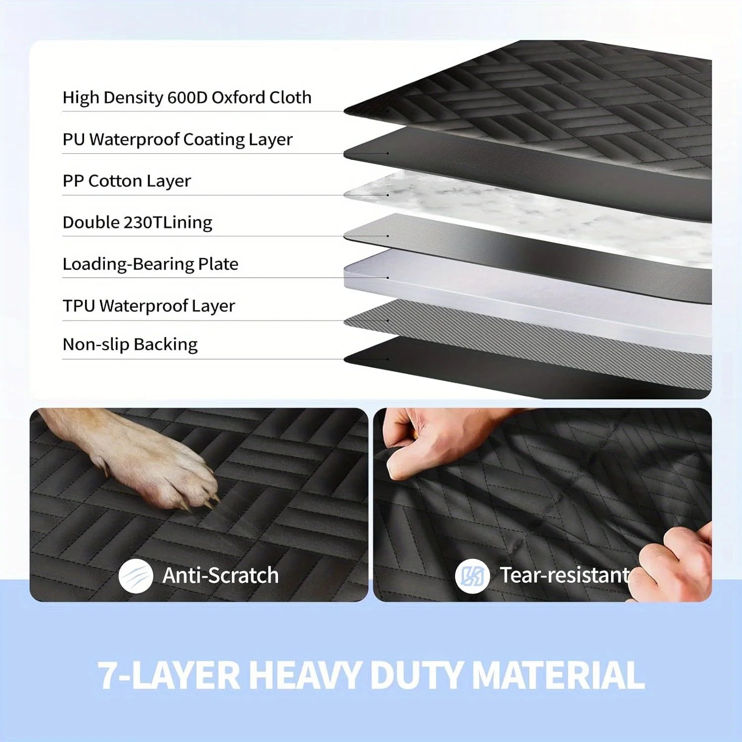 Dog Car Seat Cover for Back Seat, Hard Bottom Back Seat Extender for Dogs, Holds 400lbs, 600D Heavy Duty Scratch-Proof Waterproo