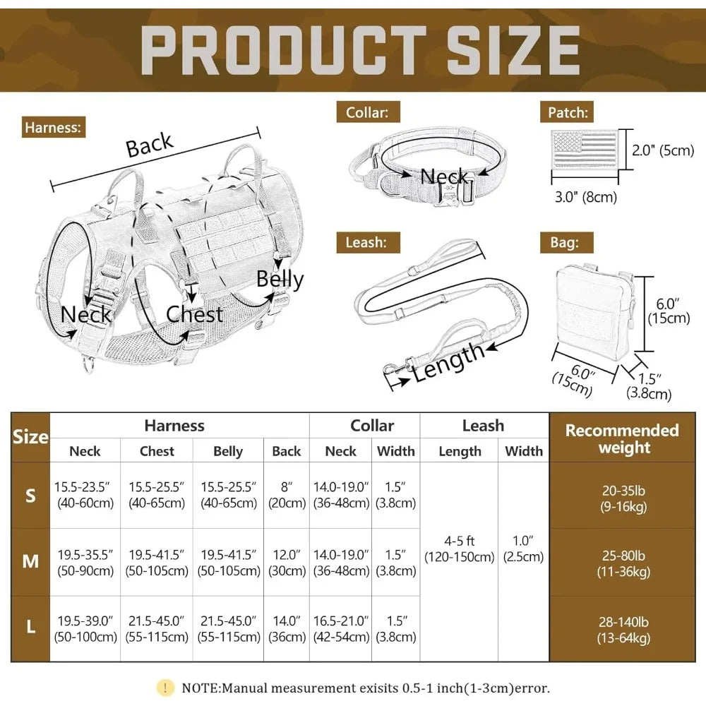 HarPink Tactical Dogness for Large Dogs, Dog Collar with Bungee Leash