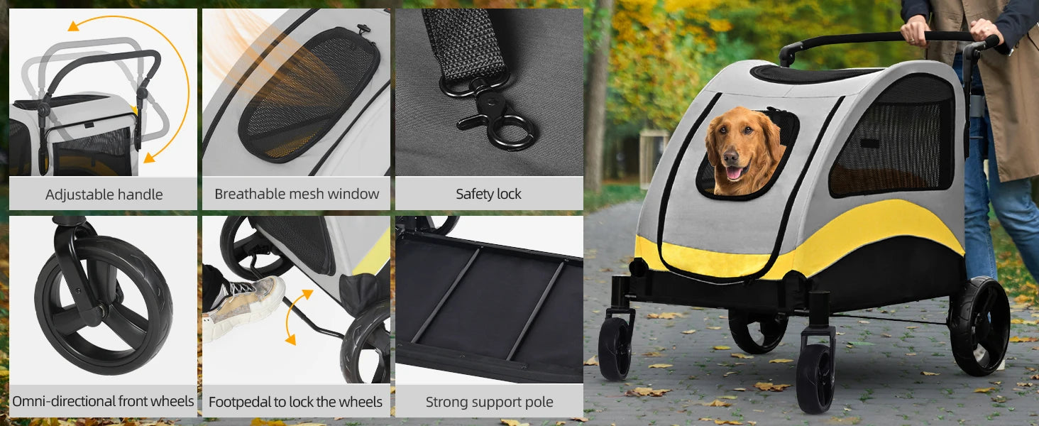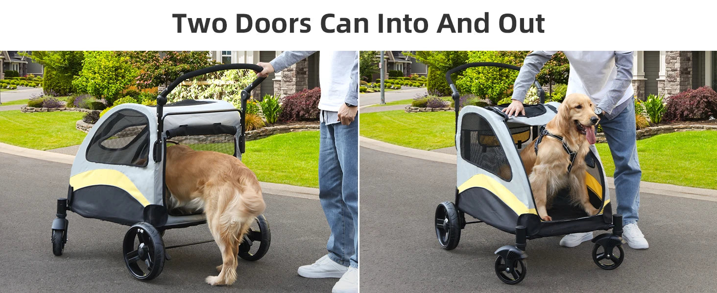 Heavy Duty Large Dog Stroller Buggy 4 Wheels Pet Jogger Pram Doggy Pushchair Brakes Foldable Travel Cart Carriage Zipper Entry